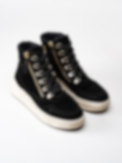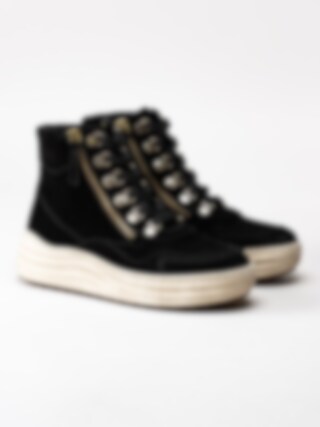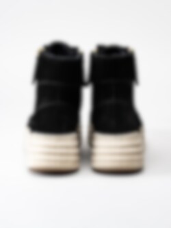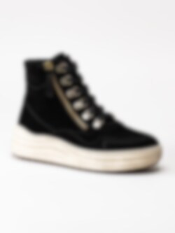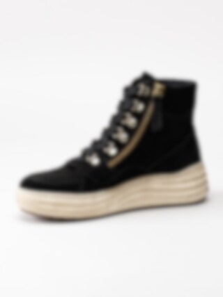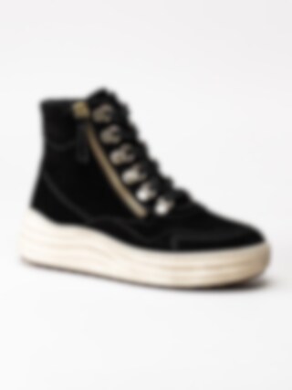 Svarta platåkängor tillverkade i mocka från Gabor.
