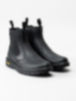 Svarta chelsea boots Åreskutan i skinn från Graninge. Ovandelen är gjord i skinn och är utrustad med Grantex, Graninges eget vattenavvisande tex-membran. Innersulan är löstagbar med extra dämpning under hälen. Yttersulan är från Vibram med utmärkt grepp.