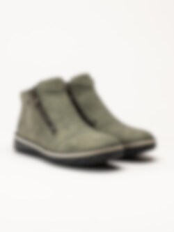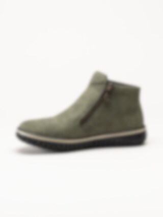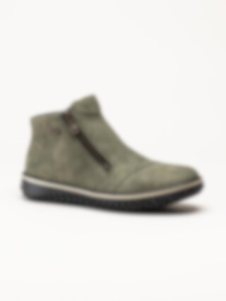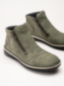 Gröna ankelboots med dubbla dragkedjor. Utrustade med Rieker-Tex som gör skorna starkt vattenavvisande samtidigt som de andas. Varma, sköna och praktiska. För extra värme, lägg gärna i en ullsula.