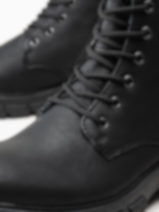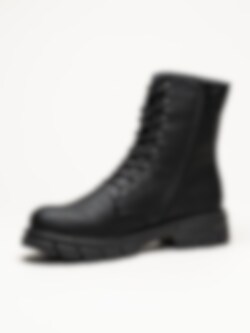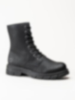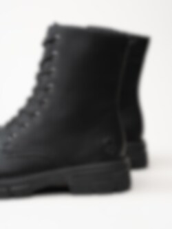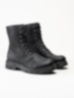 Svarta snörkängor från Rieker. Klassiska 8 håls kängot tillverkade i syntetisk material med foder och innersula i filt. Tuff känga med en yttersula i gummi och en klackhöjd på ca 4 cm.