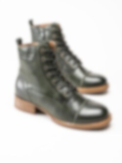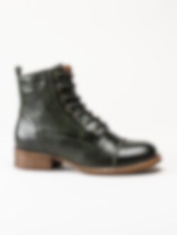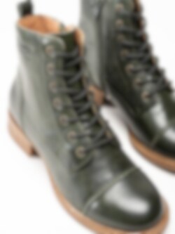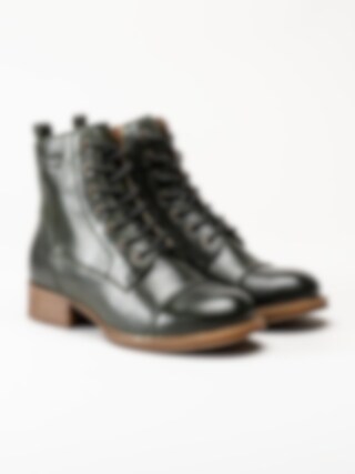 Gröna kängor Pandora i skinn från Ten Points. Klassiskt ankelhög modell med snörad ovandel med 7 hål för bra passform och dragkedja på insidan för enkel på- och avtagning. Skandinaviskt designade med ovandel i vegetabiliskt garvat läder som också känns mjukt och lyxigt runt fötterna. Insidan är i kromfritt läder samt en innersula som ger lätt och mjuk stötdämpning.Yttersula i gummi med mönster för ett bättre grepp mot underlaget. Klassiker och som med tiden får en vintage look, ett måste för garderoben!