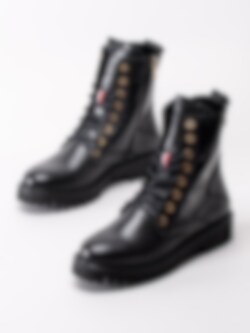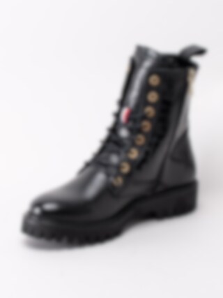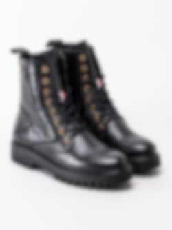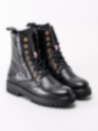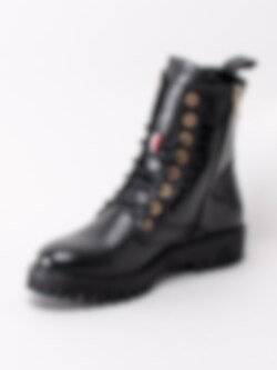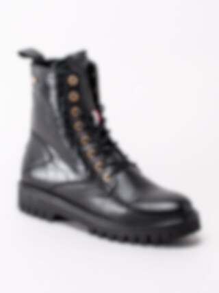 Svarta kängor Croco Look Flat Boot från Tommy Hilfiger i skinn. Tuffa kängor i gulddetaljer och coolt crocomönster.