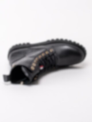 Tommy Hilfiger - Croco Look Flat Boot - Svarta kängor i skinn med crocomönster