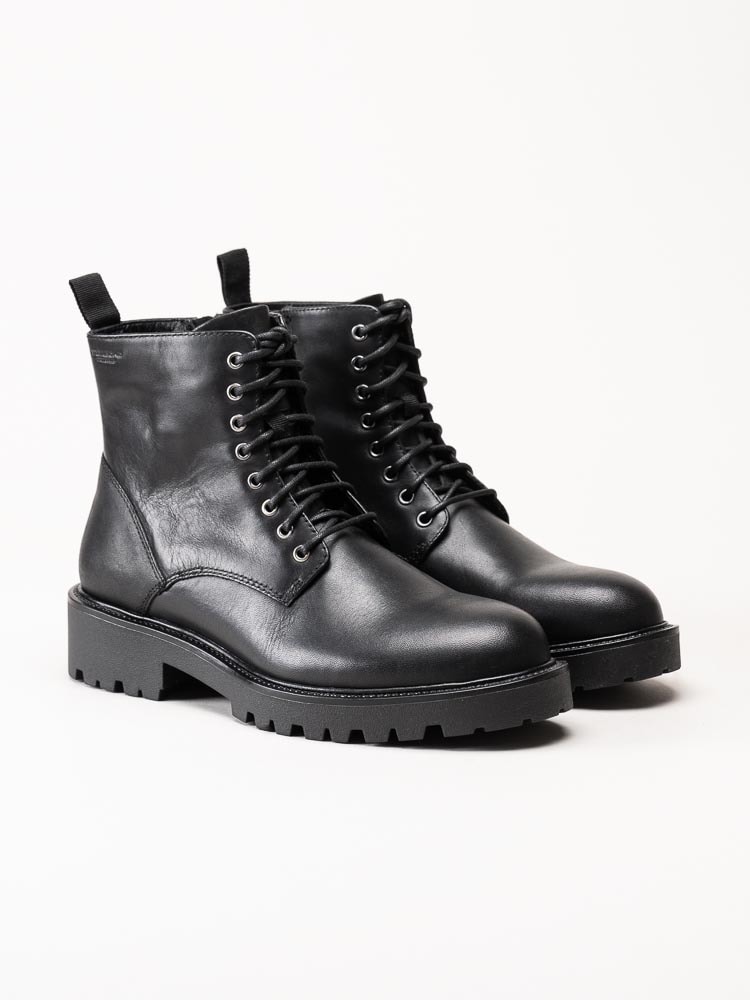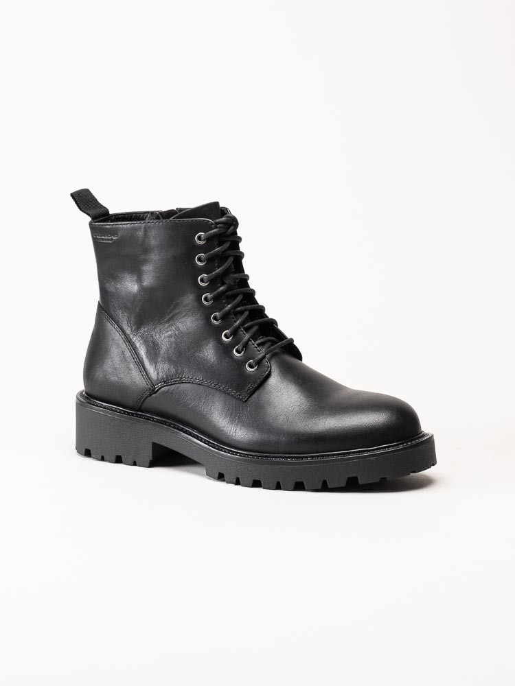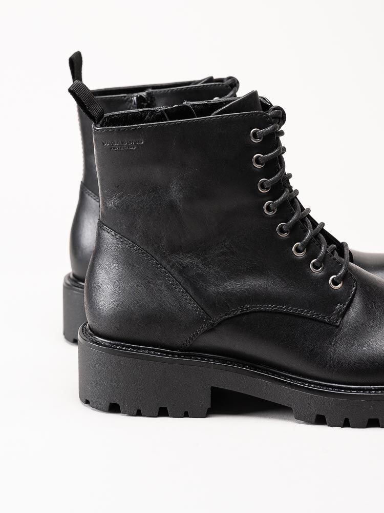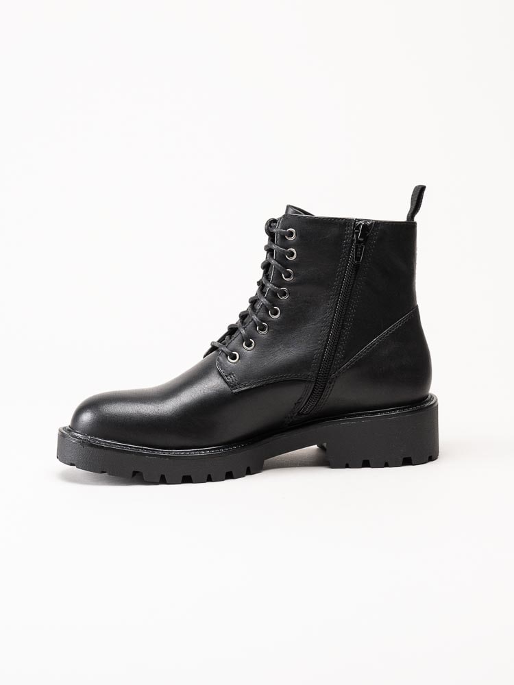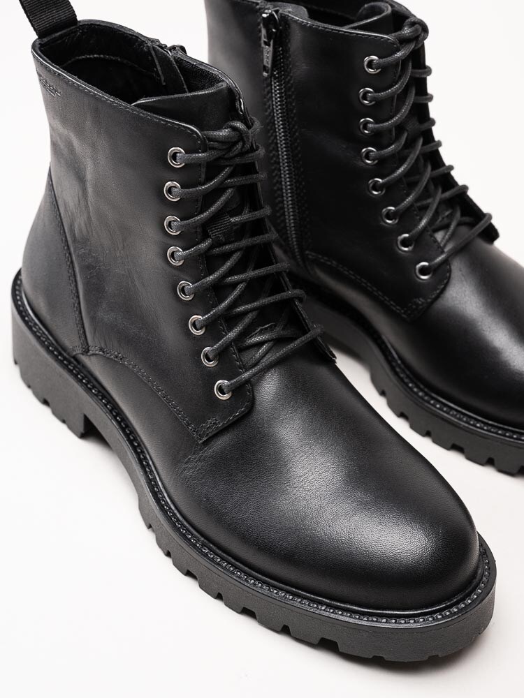 Svarta kängor Kenova i skinn från Vagabond. Klassiska kängan Kenova i en chunky version med rundad tå. Snörparti med 8 hål för bästa passform. Dragkedja på insidan och dragflik på skaftkant för smidig på- och avtagning. Foder i textil och lätt vadderad innersula i kromfrott garvat skinn för skön komfort. Yttersula med grovt mönster för ett bra grepp mot underlaget. Denna kängan passar i allas garderober!