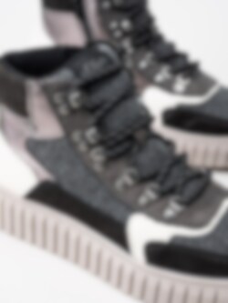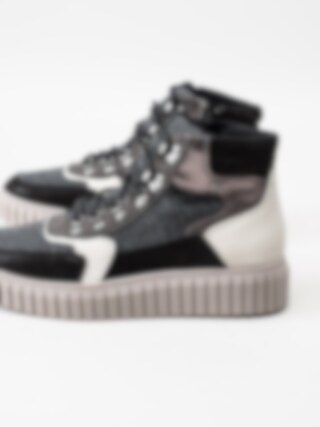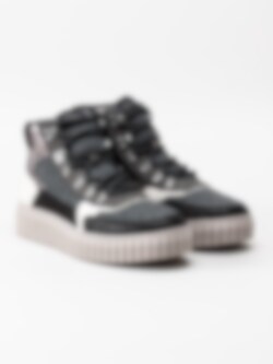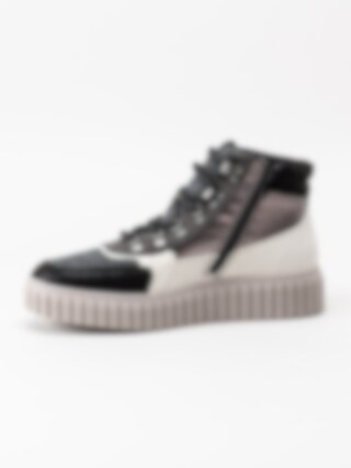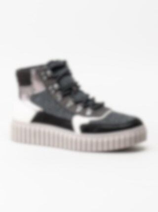 Sportiga kängor från S. Oliver i svarta och gråa nyanser. Bergsklättringsöglor, metallicdetaljer och räfflade chunky sulor för att ge det lilla extra.