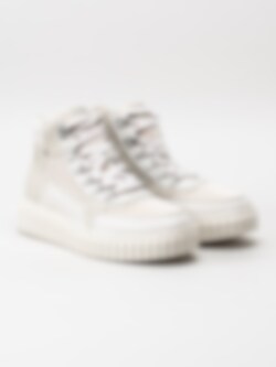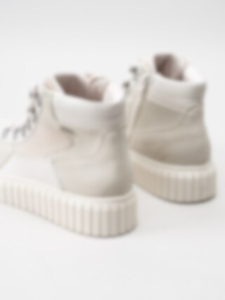 Ljusbeige kängor från S. Oliver med bergsklättringsöglor och räfflade chunky sulor för att ge det lilla extra.