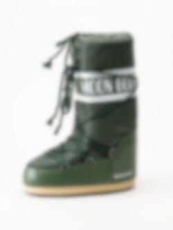 Gröna höga klassiska vinterboots Icon Nylon Forest Green från Moon Boots. Moon Boot Icon Forest Green Nylon är en modern klassiker med sitt karakteristiska formspråk och futuristiska känsla. Tillverkad i vattenavvisande nylon med detaljer i PVC kombinerar den ikoniska designen stil och funktion på ett sätt som gjort modellen tidlös. Den är isolerad för att hålla värmen, har en lätt mellansula i termoplast och en slitstark gummisula med sugproppsliknande greppmönster som ger stabilitet på olika underlag.