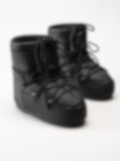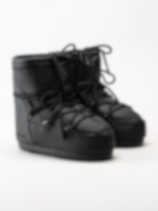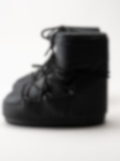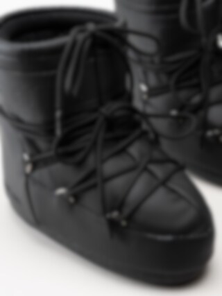 Svarta vinterboots i gummiblandning Icon Low Rubber Boots Black från Moon Boots. Denna moderna tolkning Icon Low Black Rubber av den legendariska siluetten från Moon Boot, nu klädd i en elegant, svartfärgad gummiyta som för tankarna till futuristisk design och tidlös stil. Skon behåller alla kännetecken från originalet, den är isolerad för att hålla värmen, utrustad med en lätt mellansula för bekväm dämpning och har en slitstark sula med sugkoppsliknande grepp som ger stabilitet på många underlag.