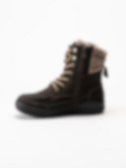 Kängan har snörning framtill och dragkedja på insidan för enkel på- och avtagning, vilket gör den både praktisk och justerbar för fot, vrist och ben. En mångsidig modell som kombinerar värme, komfort och stil - perfekt för vardag och vinterpromenader.