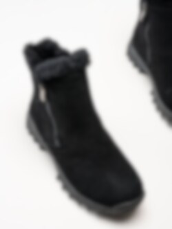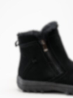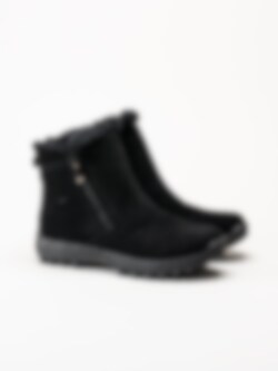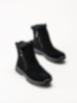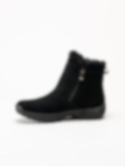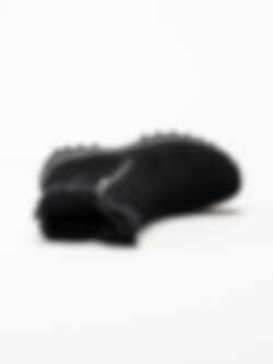 Svarta fodrade boots Holloway Black från Soft Comfort. Varmfodrade och bekväma boots tillverkade i mjuk mocka med ett naturligt fårskinnsfoder som håller fötterna sköna och varma även under kalla vinterdagar. Den löstagbara innersulan i fårskinn bidrar med extra komfort och isolering, medan yttersulan i gummi ger stabilitet och bra grepp på olika underlag. Modellen har dragkedjor på både in- och utsidan, vilket gör dem enkla att ta på och av.