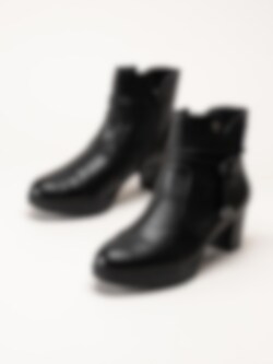 Fodrade med mjuk fleece för extra värme och utrustade med en löstagbar innersula i fleece som ger skön komfort. Den slitstarka yttersulan i gummi ger bra grepp på olika underlag. Klackhöjden är ca 6 cm med en platå på ca 2 cm, vilket ger en bekväm höjd utan att kompromissa med stabiliteten. Med Riekers Antistress-teknologi får du en lätt och flexibel sko med rymligare passform, perfekt för långa dagar.