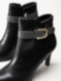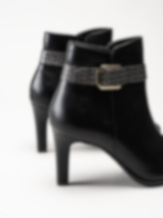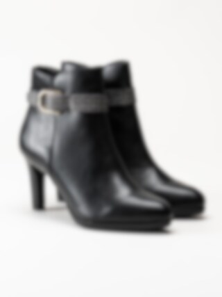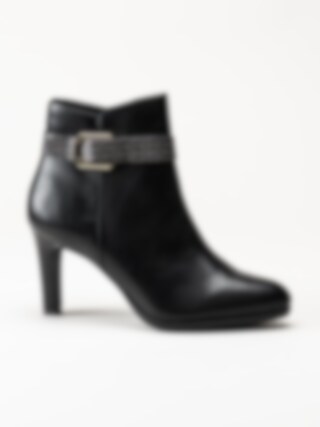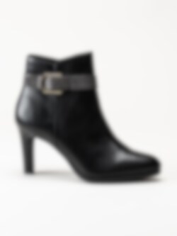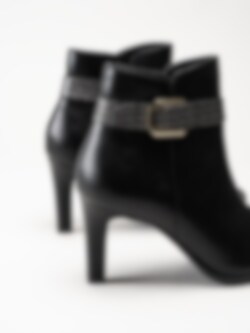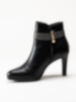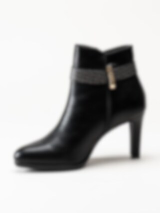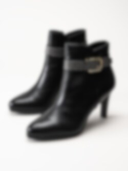 Svarta stövletter i skinnimitation från Tamaris. Foder och innersula i textil. Yttersula i syntet med en klackhöjd på ca 8.5 cm.