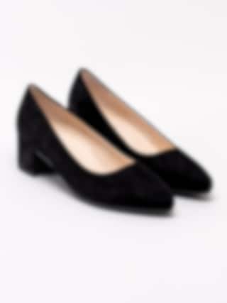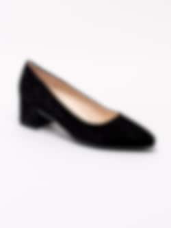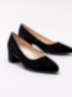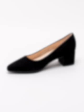 Svarta lågklackade pumps från Gabor tillverkade i mocka. Denna klassiska pumps med klack på 45 mm och med Soft Move skinnsula gör att du får den ultimata komforten. Med spetsig tå som gör att den är snygg både till byxa eller klänning. Ett måste i varje garderob.