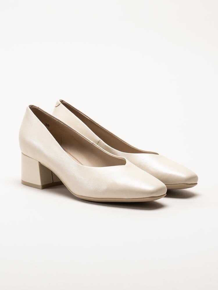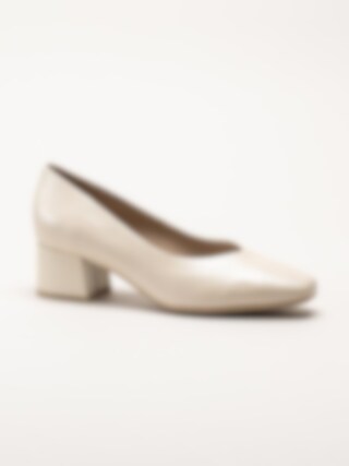 Beige pumps i skinn från Caprice i färgen Cream Perlato. Skorna är tillverkade i skinn som ger ett tidlöst och elegant uttryck, med en stilren design som passar både vardag och fest. Modellen har en mjukt rundad tå och en fin skärning framtill som framhäver silhuetten på ett sofistikerat sätt.