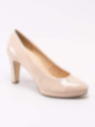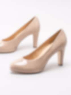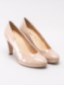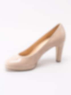 Beige pumps i syntetlack från Gabor. Klassiska platåpumps med en klackhöjd på 90 mm och platå på 15 mm. Utrustad med en Soft & Smartsula i skinn för en riktigt skön komfort. Snygg, rund skärning och fodrad med beigt foder i syntet för att behålla formen. Klädd klack i beigt syntetlack och präglad yttersula för att inte vara hal. Snygga pumps både till kostymbyxor eller klänning.