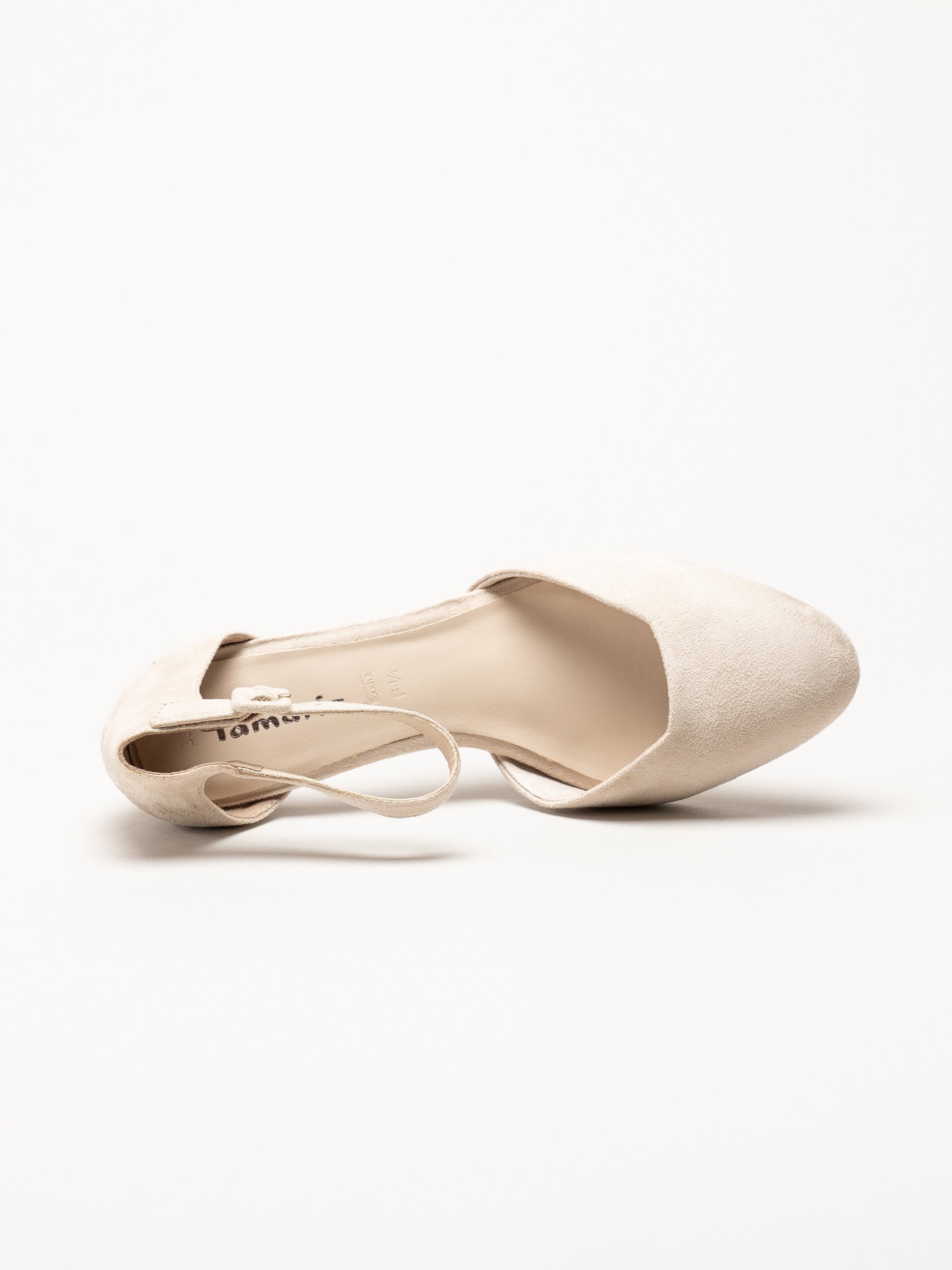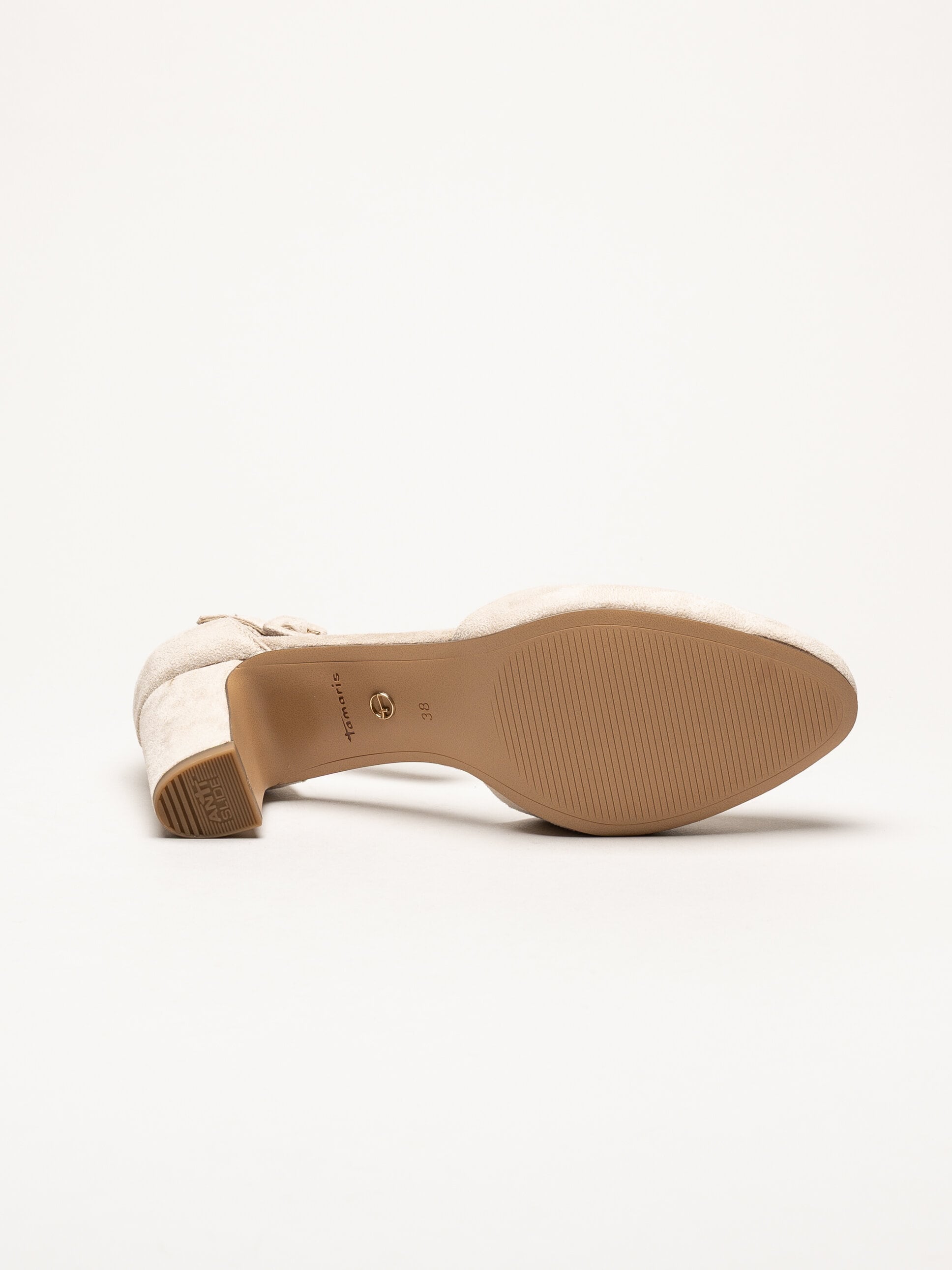 Beige pumps med ankelsleif från Tamaris i färgen Nude. Eleganta och feminina pumps tillverkade i textil som ger ett mjukt och sofistikerat intryck, perfekta för fest, bröllop och andra uppklädda tillfällen. Den stilrena silhuetten kompletteras av en ankelsleif med spänne som ger både en dekorativ detalj och en justerbar passform.