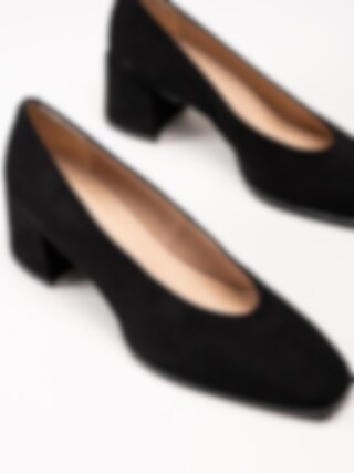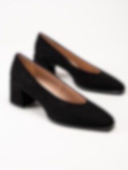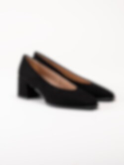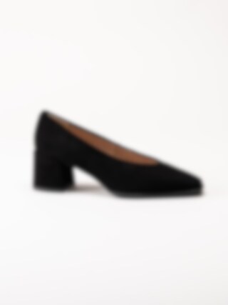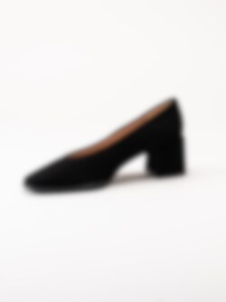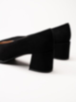 Svarta pumps i mocka från Unisa. En snygg klacksko med lätt karre´ tå och klädd klack på 6 cm. Modellen har en mjuk och skön innersula i skinn som ger extra komfort. En självklar favorit till festen.
