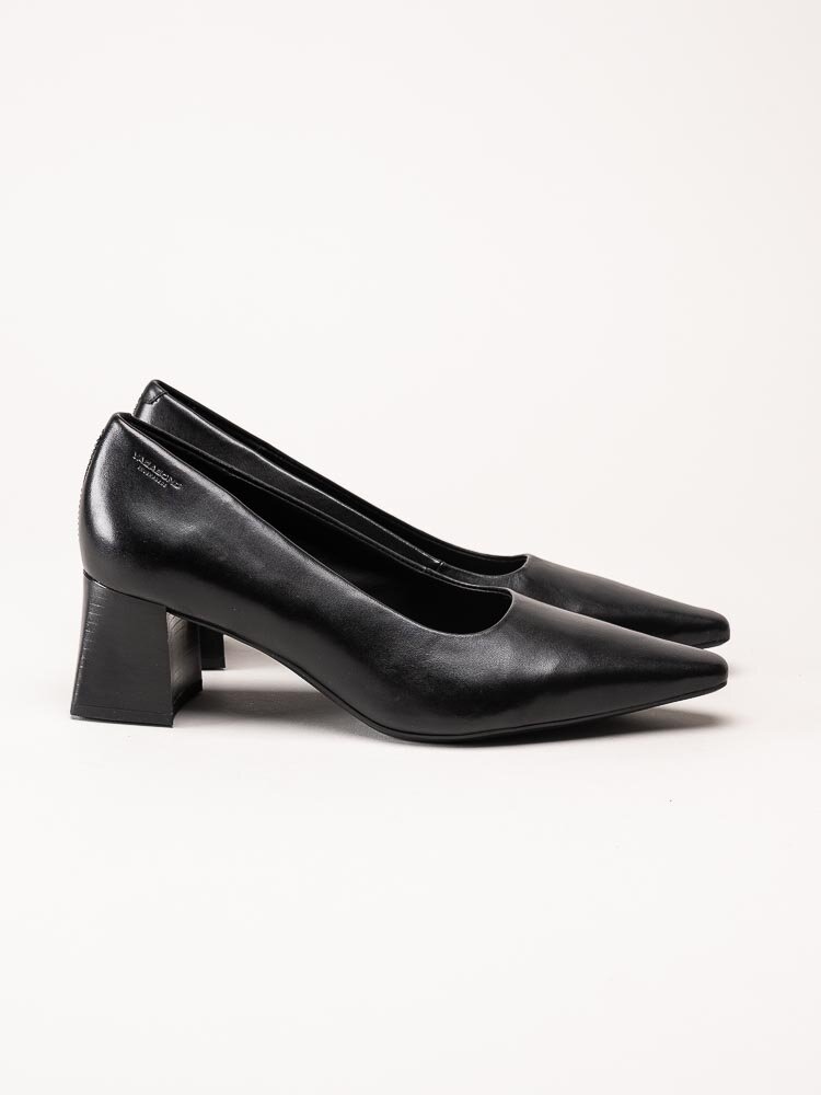 Svarta pumps Altea i skinn från Vagabond. Minimalistiska pumps med långsmal spetsig tåform. Innerfoder och innersula i skinn för bästa komfort. Bred och bekväm blockklack på ca 5,5 cm. Upptäck Vagabonds nya stilrena serie Altea!