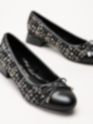 Marco Tozzi - Svarta låga pumps i textil och skinnimitation