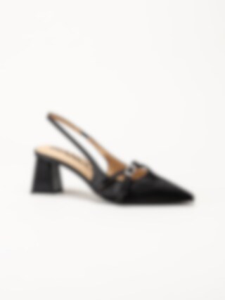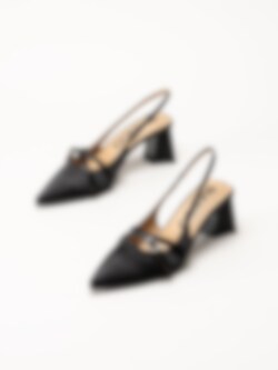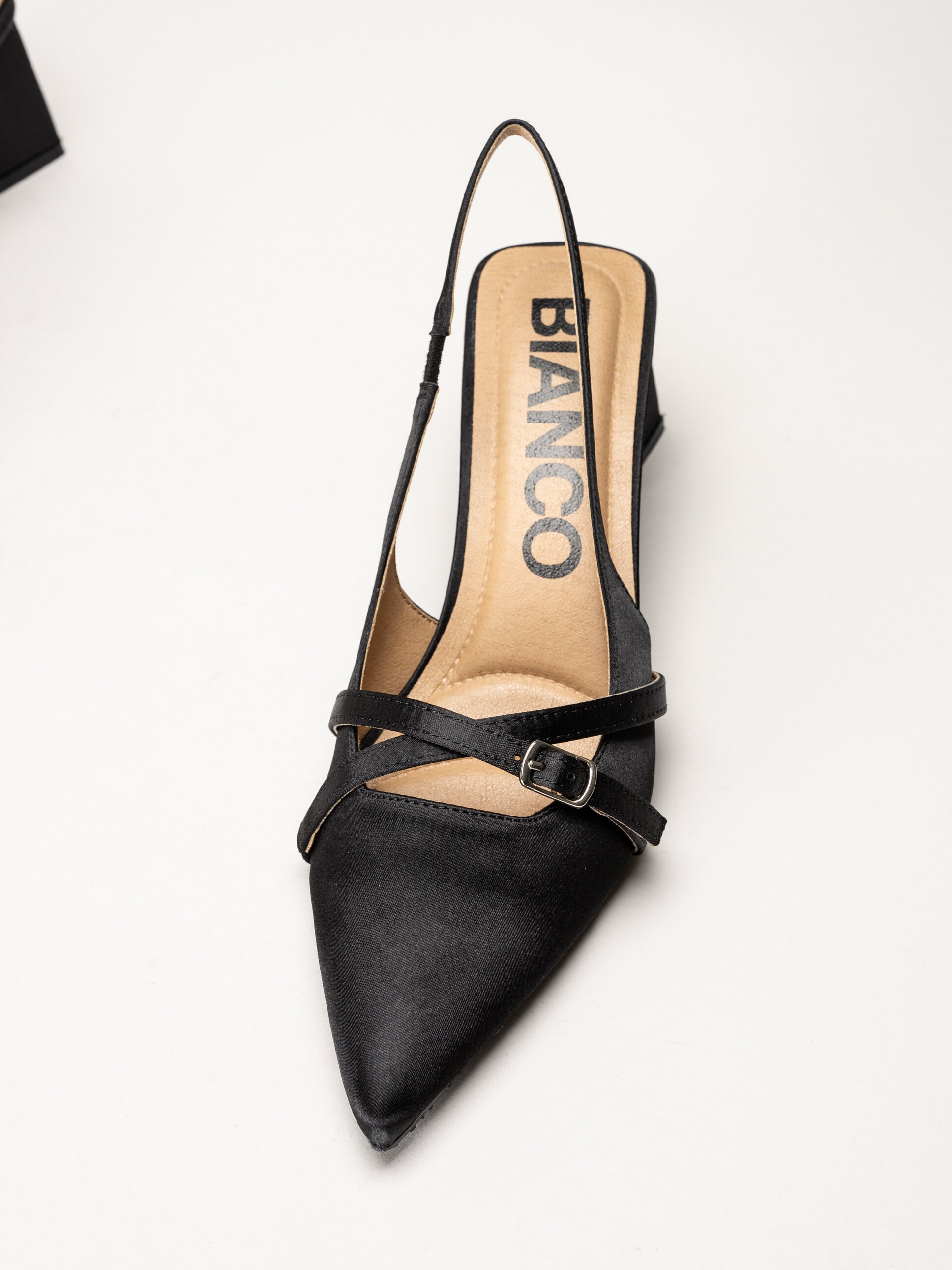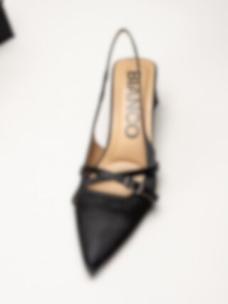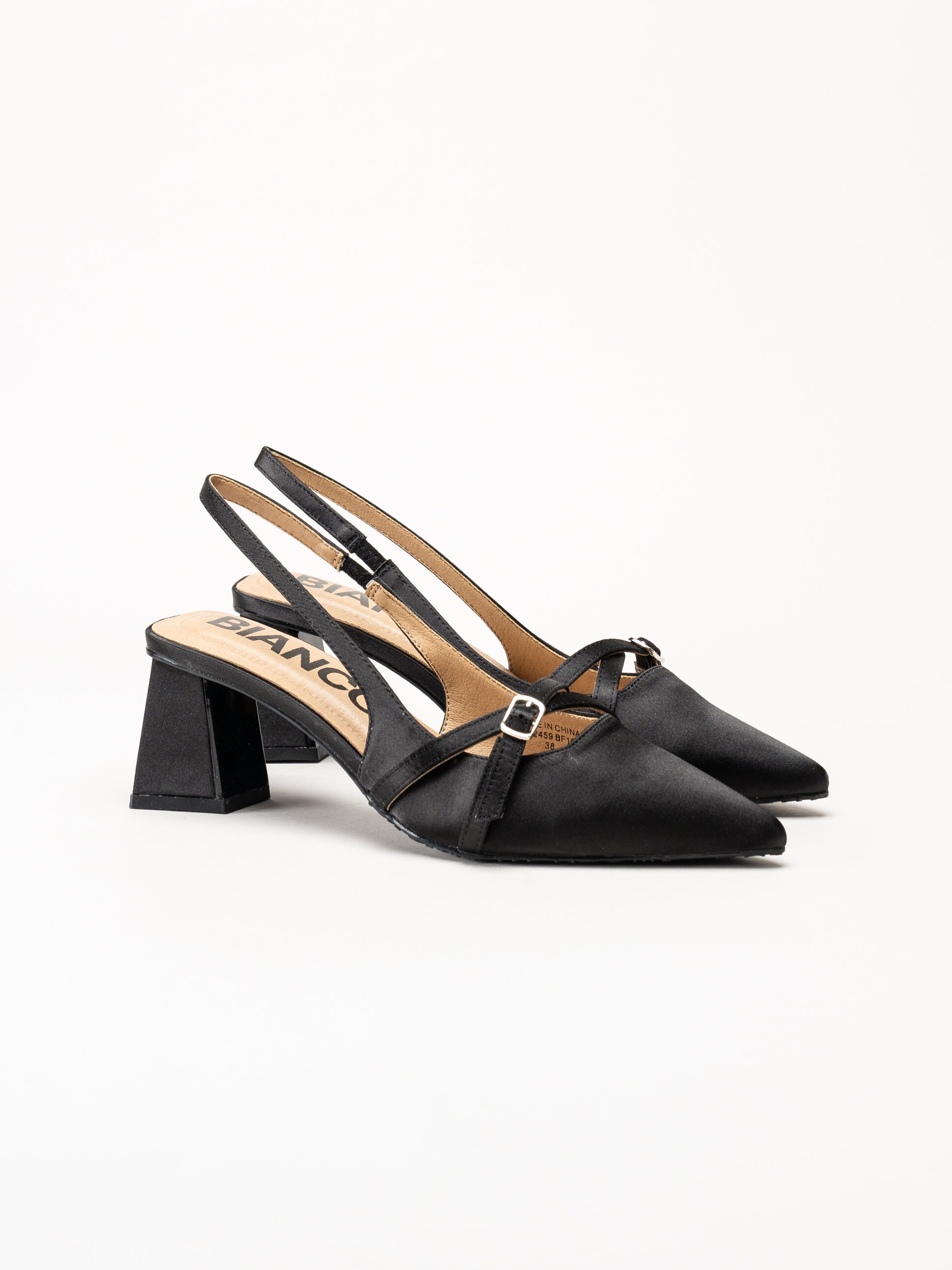 Bianco - Biamaralyn Buckle - Svarta slingback pumps i satin