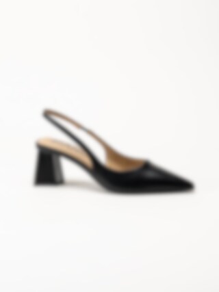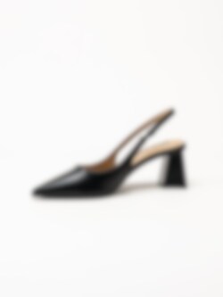 Svarta slingback pumps Biamaralyn från Bianco. Skorna är tillverkade i syntet med blocklack som ger ett elegant och modernt uttryck. Slingback-designen med öppen häl skapar en feminin siluett, medan resårremmen baktill ger en flexibel och bekväm passform.