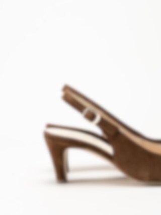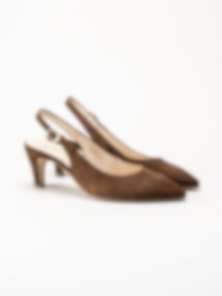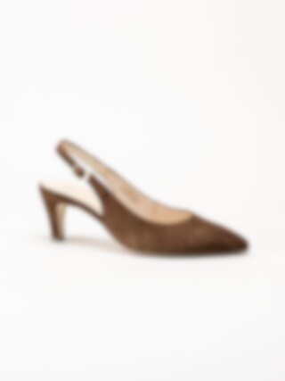 Mörkbruna slingback pumps i mocka från Gabor i färgen Cacao. Skorna är tillverkade i mjuk mocka som ger ett elegant och sofistikerat uttryck. Slingback-designen med öppen häl skapar en luftig känsla och har ett litet spänne som kan justeras för optimal passform. Den feminina siluetten passar både till vardag och mer uppklädda tillfällen.