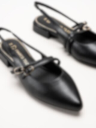 Marco Tozzi - Svarta slingback pumps i skinnimitation