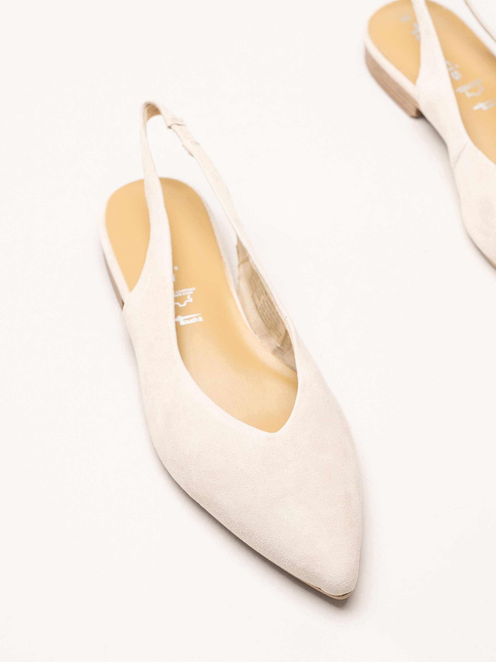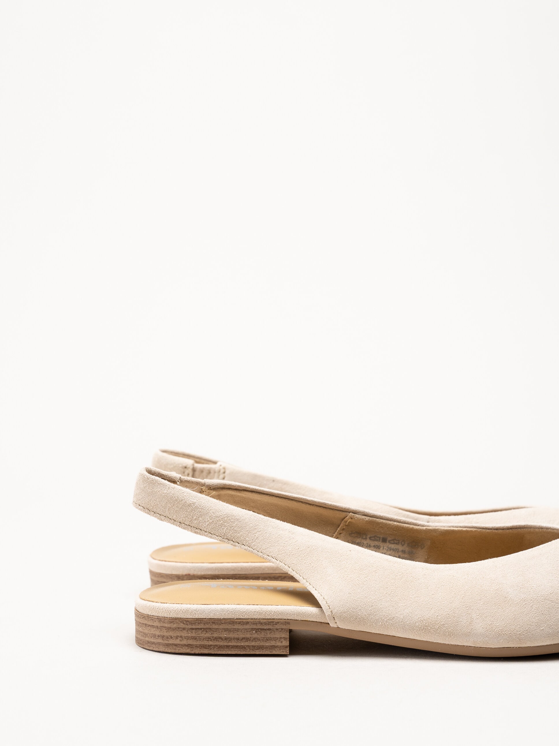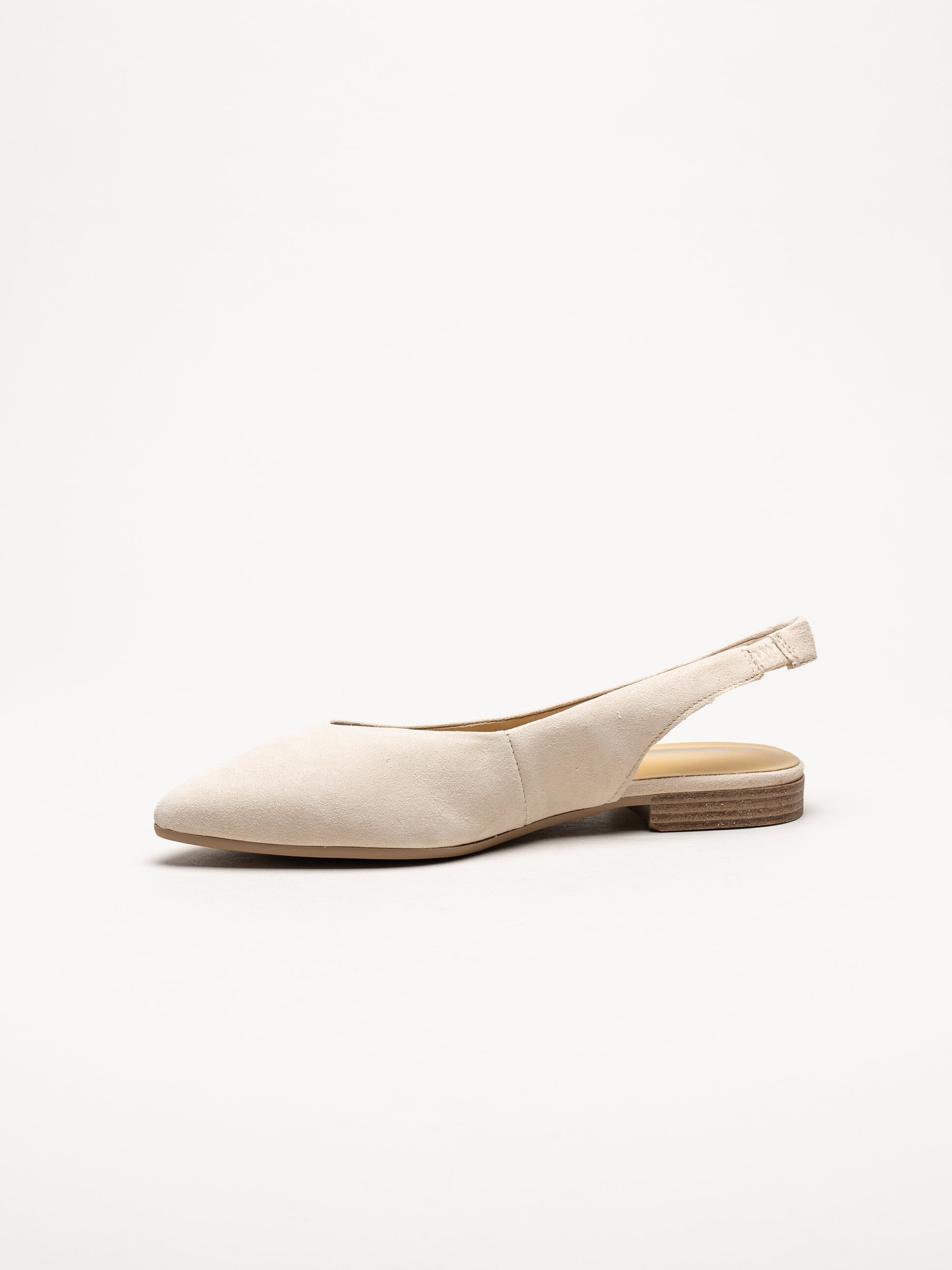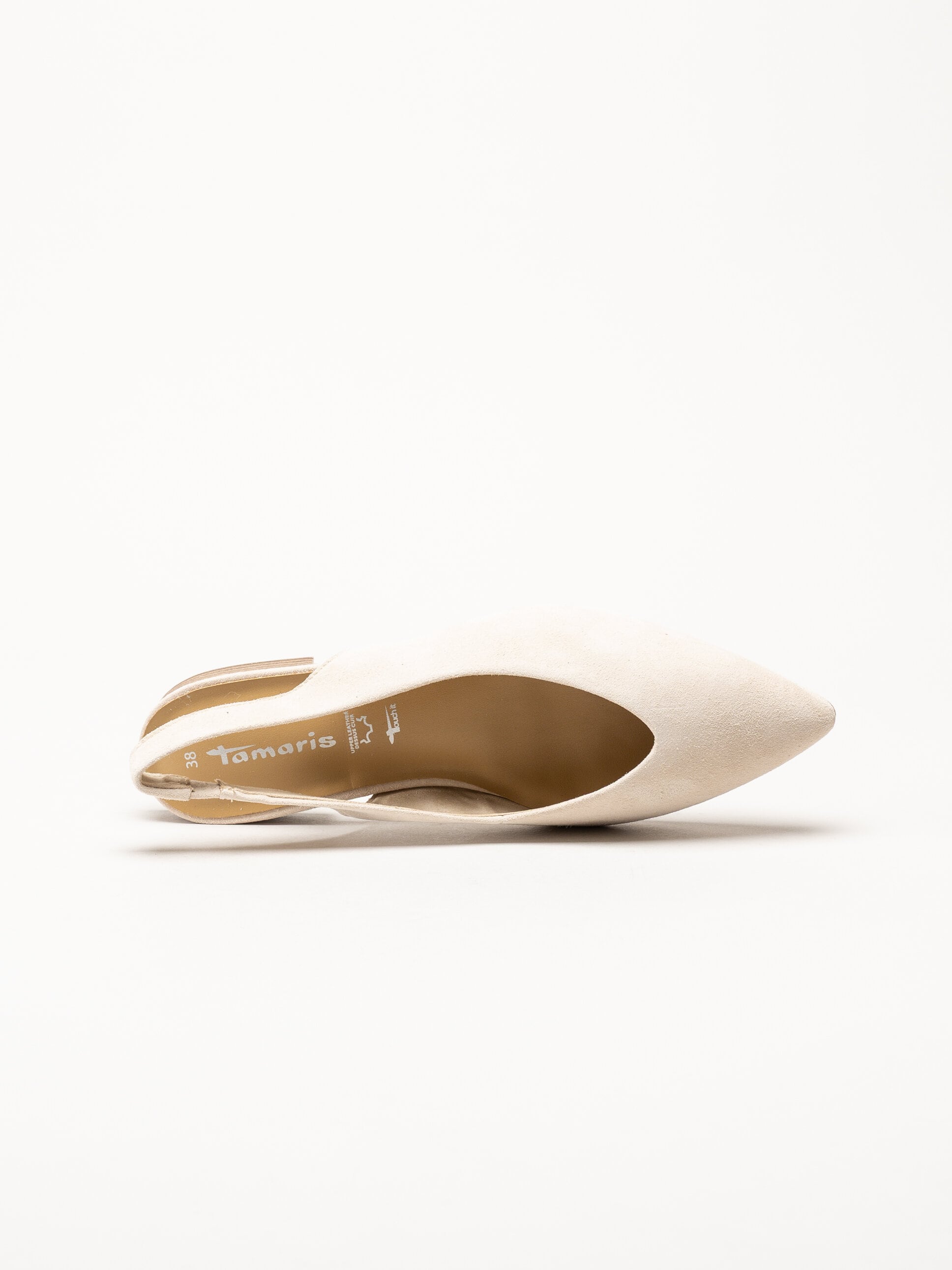 Beige slingback pumps i mocka från Tamaris. Skorna är tillverkade i mjuk mocka som ger ett stilrent och elegant intryck, perfekta för både fest och mer uppklädda vardagsoutfits. Den öppna slingback-modellen med resår i hälremmen ger ett luftigt och lätt uttryck samtidigt som passformen sitter säkert på foten.