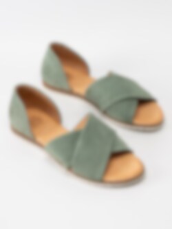 Gröna sandaletter från Apple of Eden i mocka med korslagda remmar.