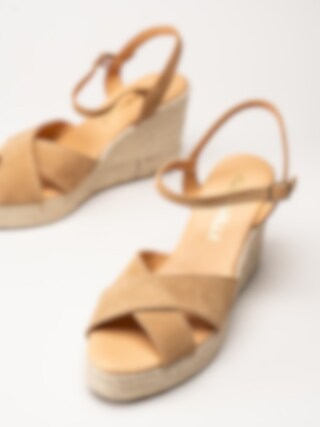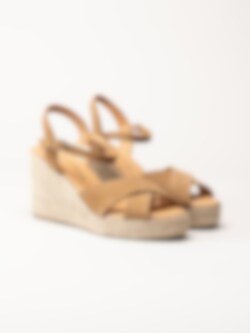 Alberville - Vendy Suede Elche - Ljusbruna kilklackade sandaletter i mocka