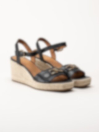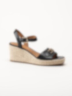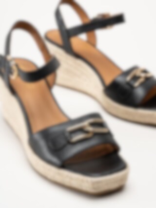 Geox - D Panarea C - Svarta kilklackade sandaletter i skinn