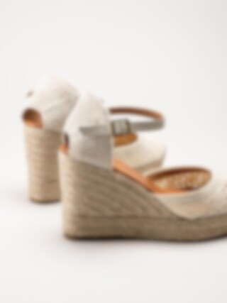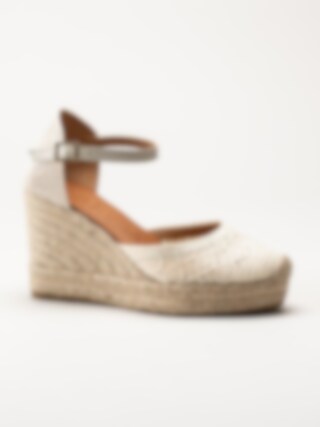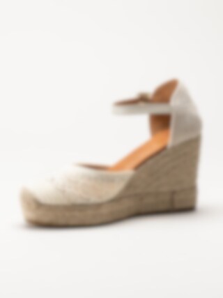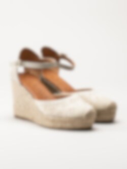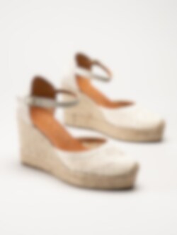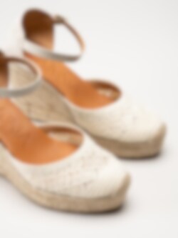 Kanna - Vita kilklackade sandaletter i broderad textil