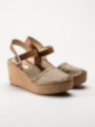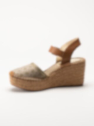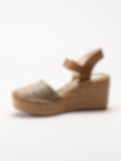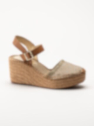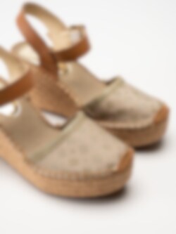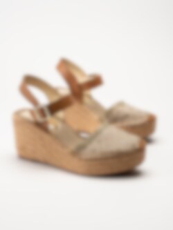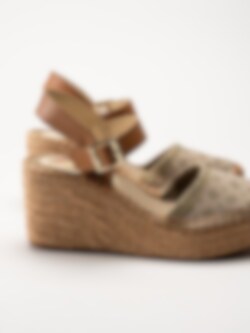 Sandaletter Susan Lycra Print Beige i textil och skinn från Replay. Fina sandaletter med vristrem med guldfärgat spänne och stängd tå. Ofodrad insida med skön och mjuk innersula i textil. Repklädd kilklack som passar utmärkt till sommarens outfits. Klack på ca 8 cm med platå på ca 3,5 cm. Brun yttersula i gummi. En snygg modell för våren och sommarens fester!