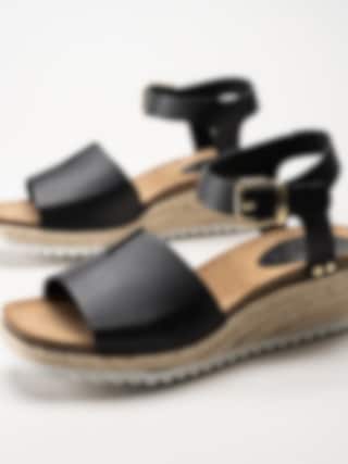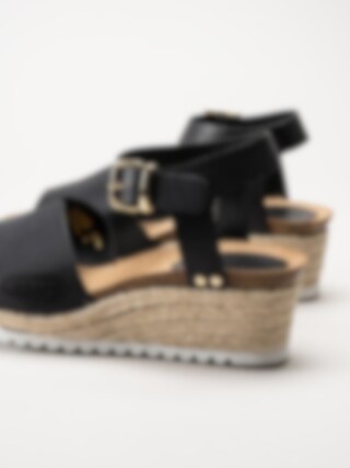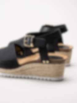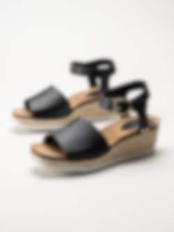 Sweeks - Ingrid - Svarta kilklackade sandaletter i skinn
