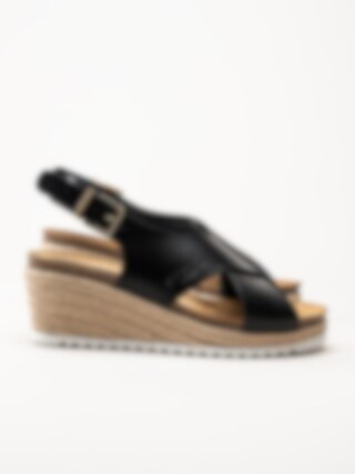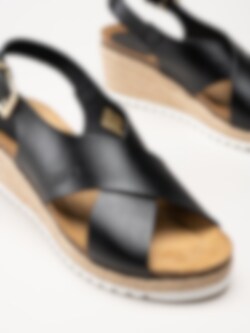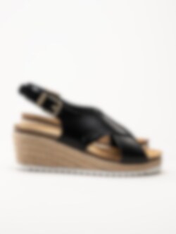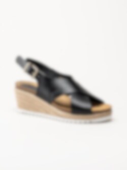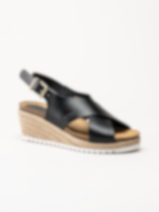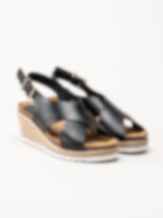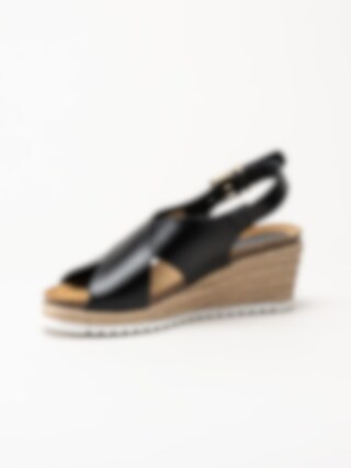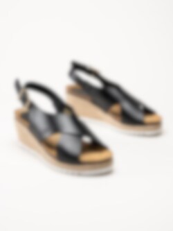 Sweeks - Selma Cross - Svarta kilklackade sandaletter i skinn