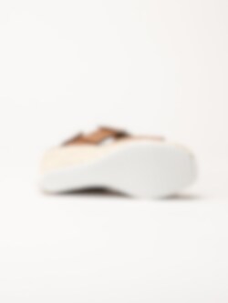 Invändigt är sandaletten fodrad med mocka, och innersulan i mocka bidrar till en mjuk och bekväm känsla vid varje steg.