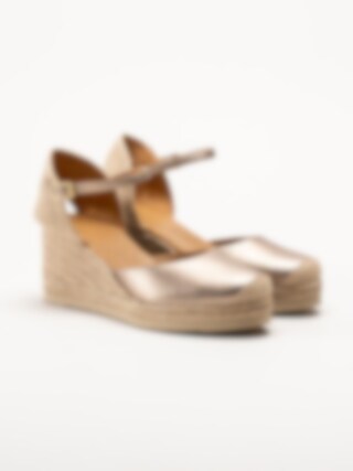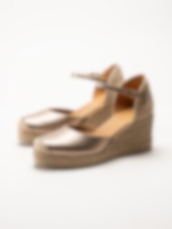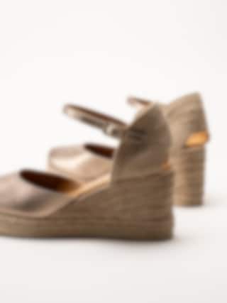 Unisa - caceres_25 - Guldiga kilklackade espadrillos i skinn