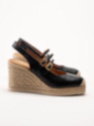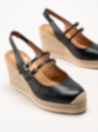 Unisa - Cueta7 - Svarta kilklackade espadrillos i skinn