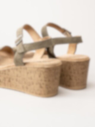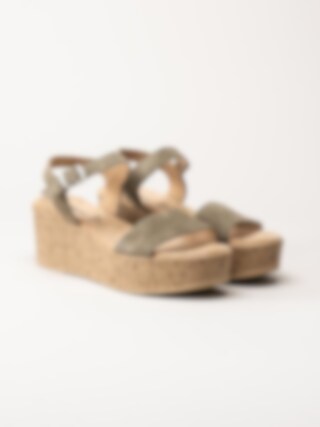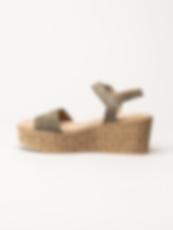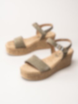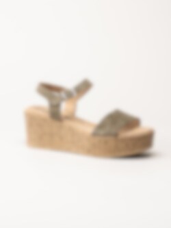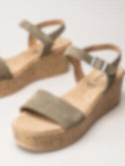 S.Oliver - Olivgröna platåsandaletter i mocka