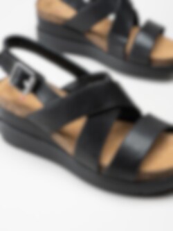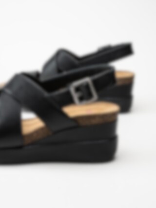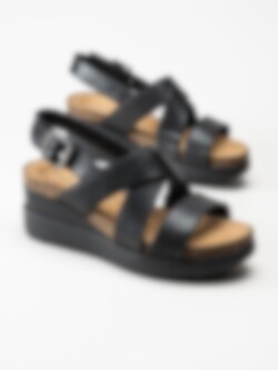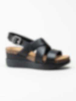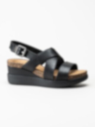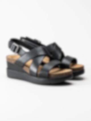 Clarks - Lizby Cross - Svarta kilklackade sandaletter i skinn