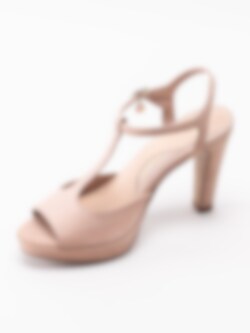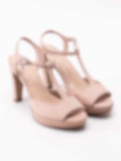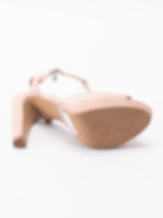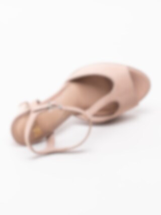 Rosa sandaletter Clover från Dasia tillverkade i nubuck med T-slejf. Platåsandaletter som passar till sommarens fester. Justerbar rem med spänne i silver som öppning. Smyckeslogga hängandes på spännet som detalj. Beiget foder i skinn och innersula i skinn med mjuk fotbädd. Klädd klack i nubuck på ca 10.5 cm med platå på ca 2 cm. Beige yttersula i syntet med mönstrat framparti.