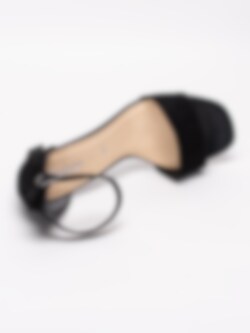 Svarta sandaletter från Gabor tillverkade i mocka med kantig tå. Festsandaletter med halvhög klack. Justerbar vristrem med runt spänne i silvermetall som öppning. Foder och beige innersula i skinn med präglad logga i silver. Klack i mocka med klackhöjd på ca 6.5 cm. Mörkgrå yttersula i syntet med slät yta och svart slitsuleklack.