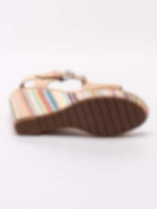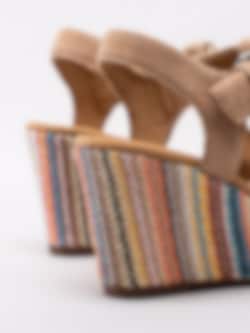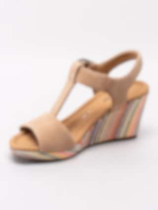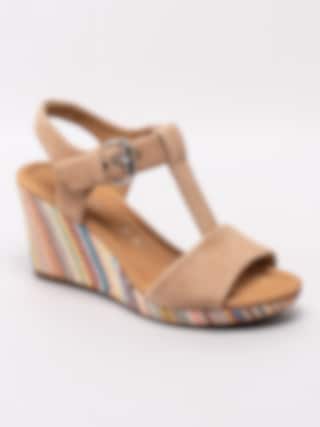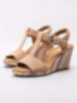 Gabor - Beige sandaletter med flerfärgad kilklack