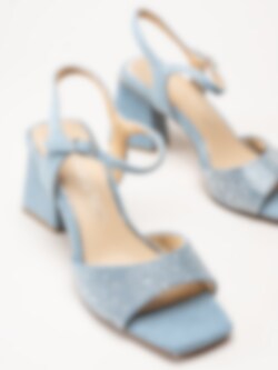 Ljusblå sandaletter i jeanstyg från Marco Tozzi. Ett par riktigt läckra höga sandaletter som sticker ut ur mängden. Strassbeströdd ovandel, klädd blockklack på ca 8,5 cm. Foder i textil och vadderad innersula i syntet. Riktigt fina festsandaletter som sätter pricken över i på vilken outfit som helst.