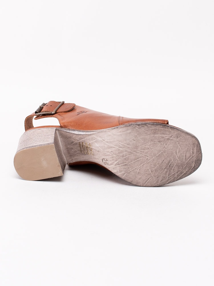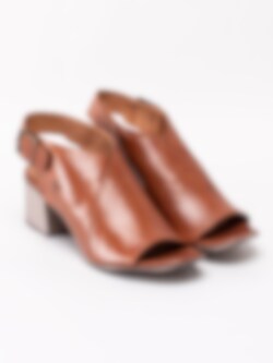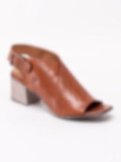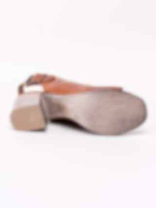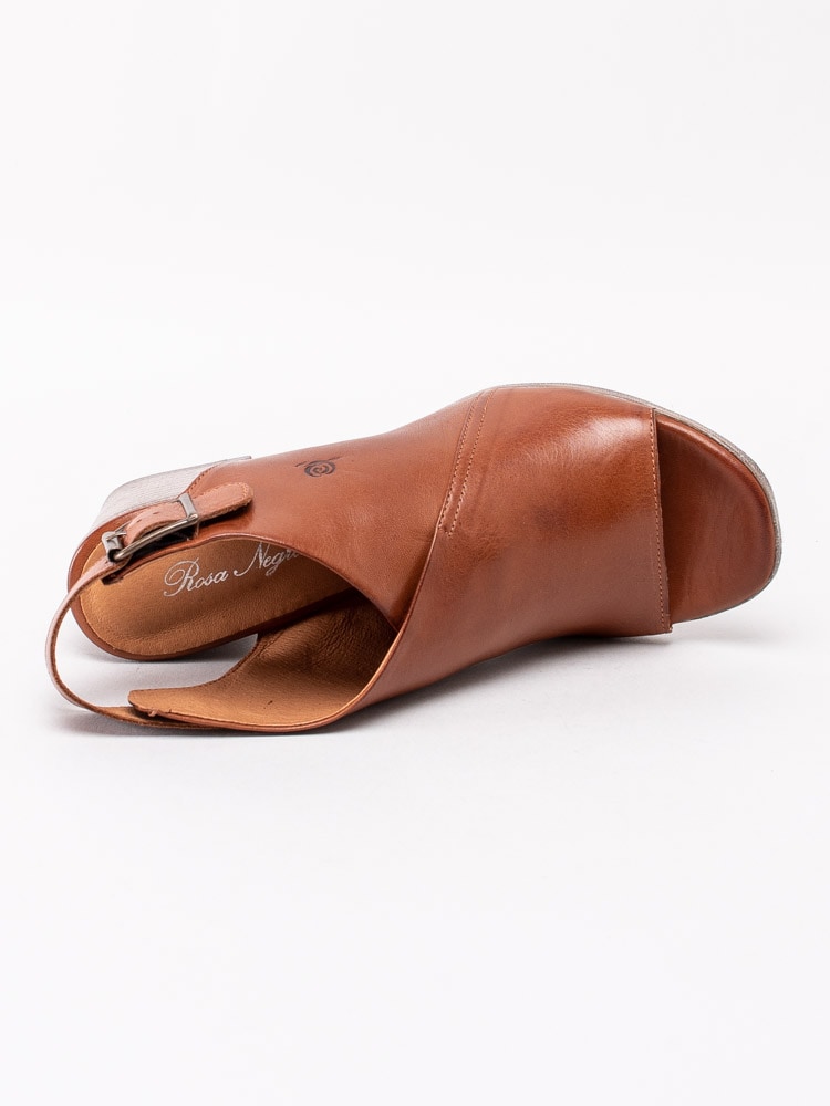 Bruna sandaletter från Rosa Negra tillverkade i skinn med korsat framparti. Präglad logga på utsidan. Brun justerbar hälrem med spänne i silver som öppning. Brunt foder och innersula i skinn med sömlös logga i silver och brun tå. Klossklack i träimitation på ca 6 cm. Beige yttersula i syntet med slät yta.