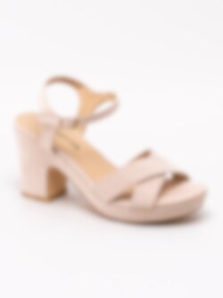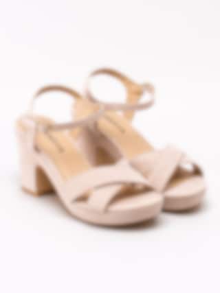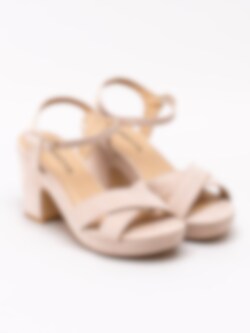 Beige sandaletter från Savita tillverkade i mockaimitation. Korslagda band över framparti. Passar perfekt som fest- eller som studentskor. Hälrem med justerbar rem runt vrist med spänne i guld. Beigt foder och innersula i syntet med sömlös logga. Klädd klack på ca 9 cm och platå på ca 2.5 cm. Beige yttersula i syntet med slät yta.