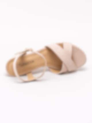 Savita - Beige platåsandaletter i mockaimitation