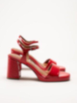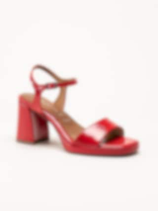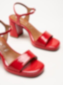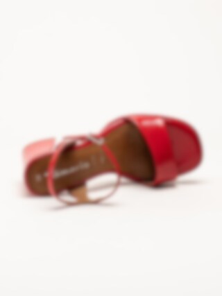 Tamaris - Röda platåsandaletter i lacksyntet