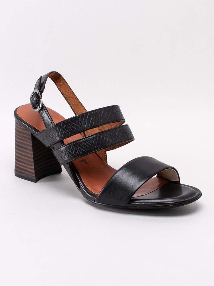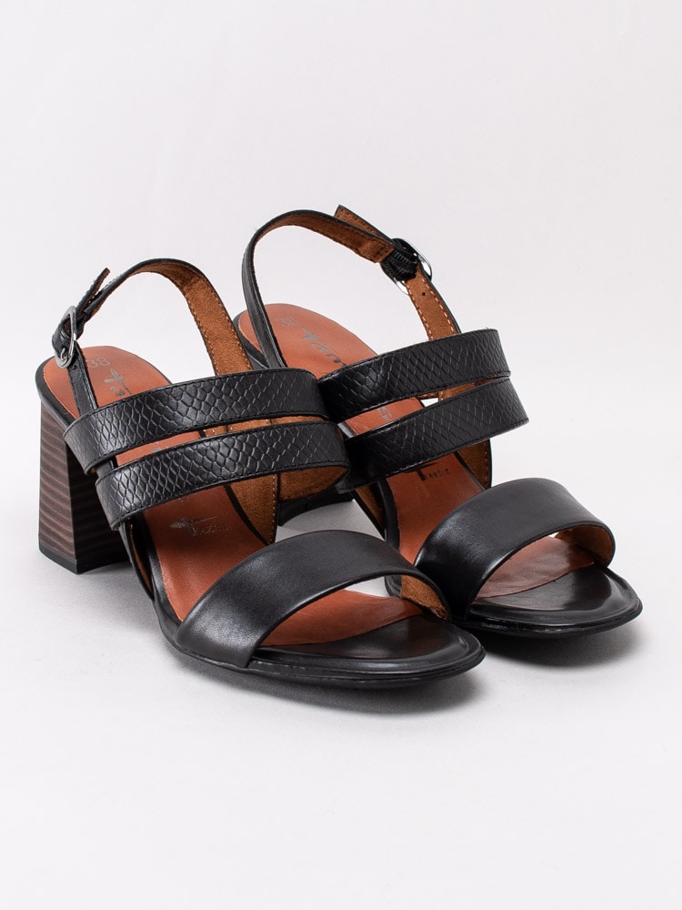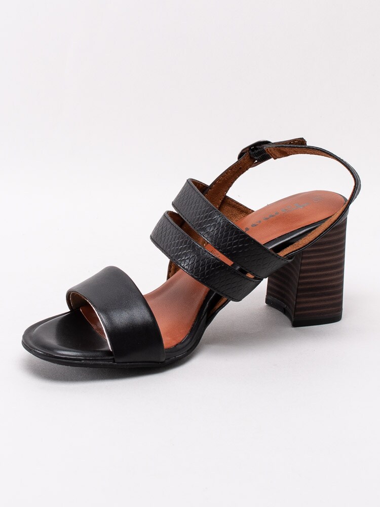 Tamaris - Svarta sandaletter med ormskinnsmönstrade remmar