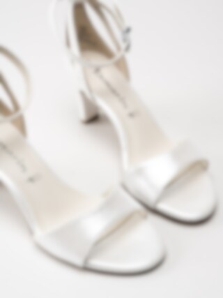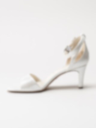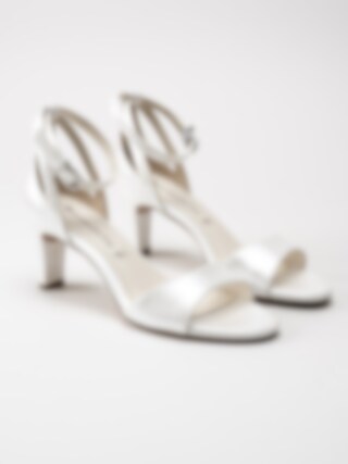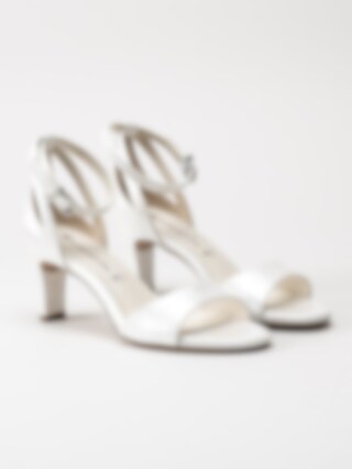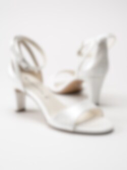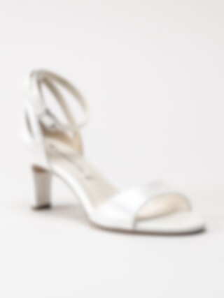Vita skimrande högklackade sandaletter från Tamaris. Snygga festskor med rem runt vristen. Tillverkade i syntet med foder och innersula i syntet. Vit yttersula med en klackhöjd på ca 7 cm.